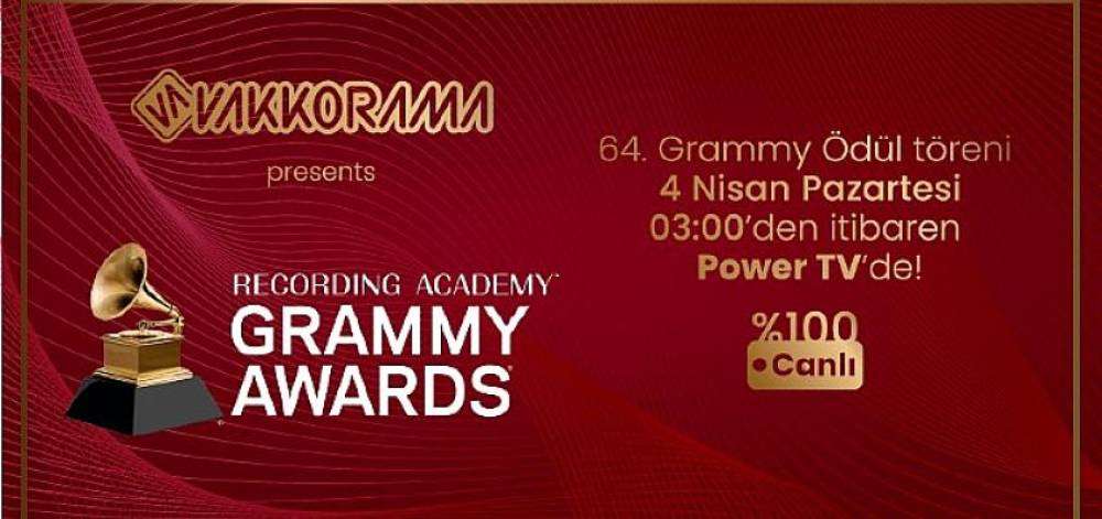 64. Grammy Ödülleri 3 Nisan’da Las Vegas’ta MGM Grand Garden Arena’da düzenlenecek törenle sahiplerini bulacak. Müzik dünyasının yıldızlarının katılacağı yılın bu en önemli müzik olayına ev sahipliği yapacak olan Türkiye’nin müzik kanalı Power TV, Vakkorama’nın katkılarıyla 04 Nisan Pazartesi 03.00’den itibaren canlı yayınla Las Vegas’a bağlanacak.