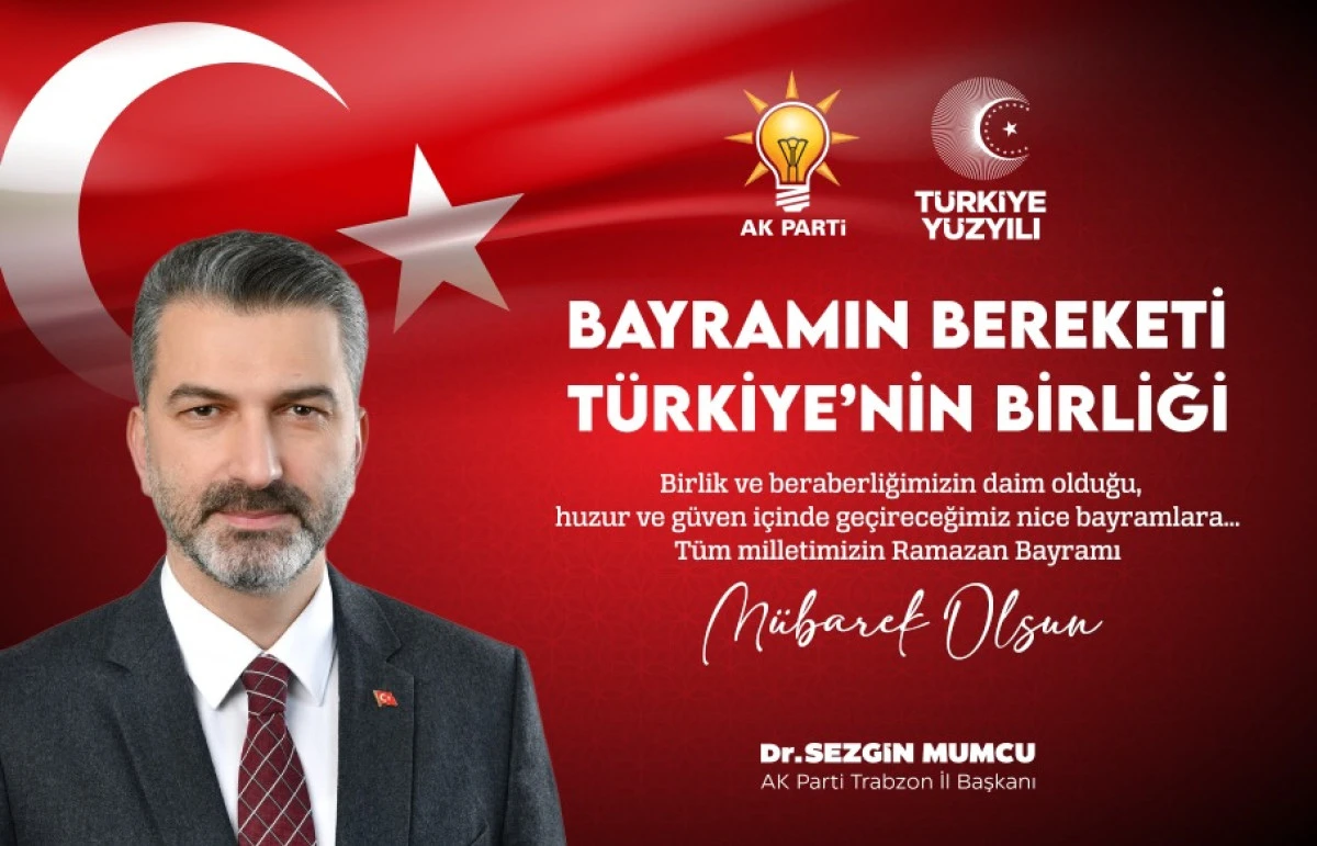 Trabzon haberleri | AK Parti Trabzon İl Başkanı Dr. Sezgin Mumcu, Ramazan Bayramı dolayısıyla yayımladığı mesajda, mübarek ayın ardından gelen bayramın, toplumda birlik ve beraberliği güçlendiren özel bir zaman olduğunu vurguladı. Mumcu, “Rahmet, bereket ve mağfiret ayı Ramazan-ı Şerif’i geride bırakırken, kardeşliğin, dayanışmanın ve paylaşmanın öne çıktığı bir Ramazan Bayramı’na ulaşmanın huzurunu yaşıyoruz” ifadelerini kullandı.