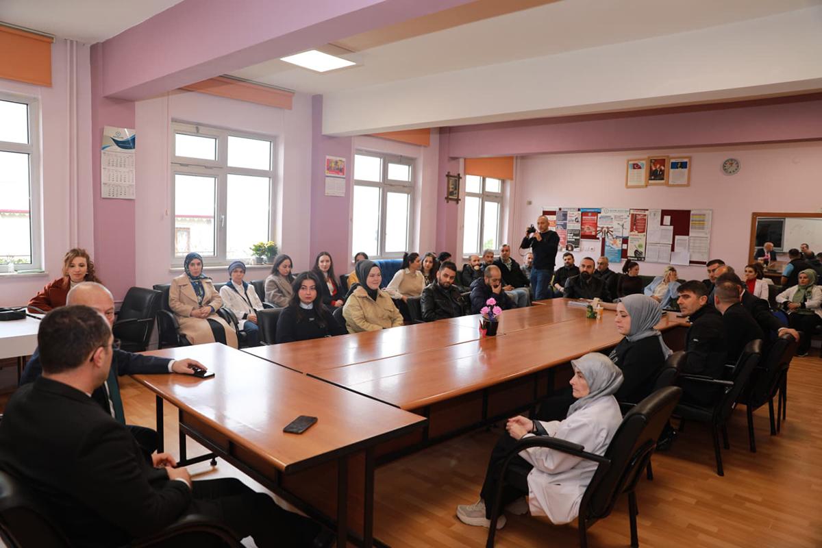 Trabzon Haber Merkezi | Akçaabat Belediye Başkanı Osman Nuri Ekim, okul ziyaretleri kapsamında Cumhuriyet Ortaokulu öğretmenleriyle bir araya gelerek eğitim için yürütülen belediye projelerini anlattı.