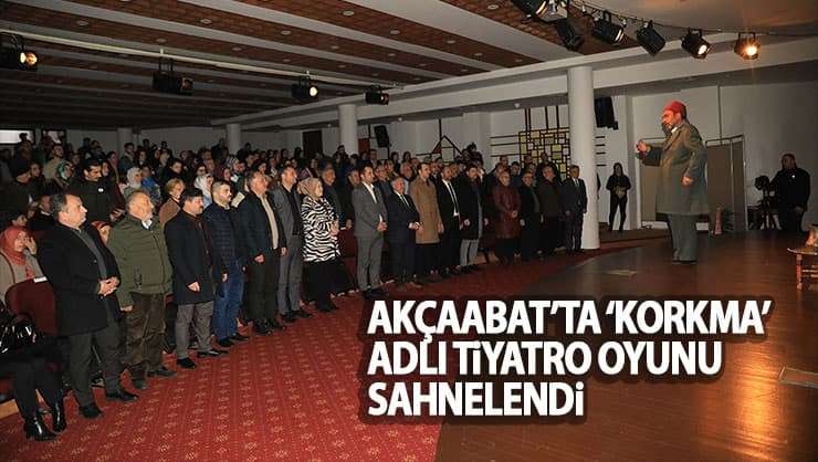 ‘Korkma’ adli tiyatro oyununa; Akçaabat Kaymakamı Ramazan Kurtyemez, Akçaabat Belediye Başkanı Osman Nuri Ekim, Cumhuriyet Başsavcısı Hayrullah Şahin, Akçaabat İlçe Jandarma Komutanı Barış Kesici, Akçaabat Belediye Başkan Yardımcısı Serkan Özdemir, Siyasi Partilerin İlçe Başkanları, Sivil Toplum Kuruluşlarının Temsilcileri, Akçaabat Belediyesi Meclis Üyeleri, Daire amirleri ve çok sayıda tiyatro sever vatandaş katıldı.