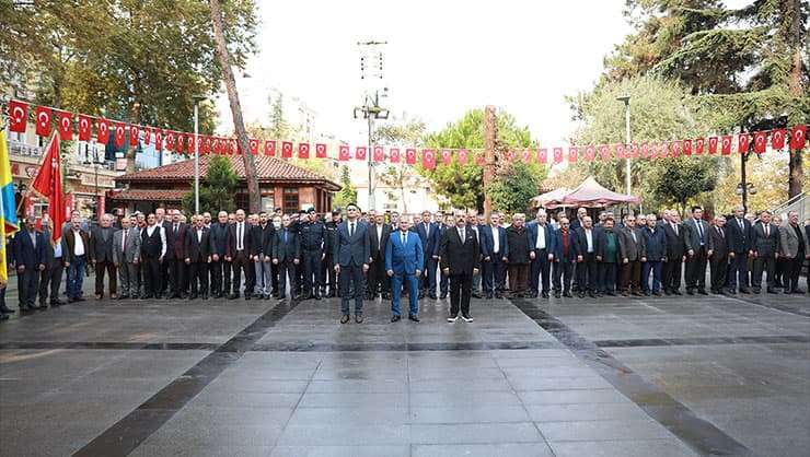 19 Ekim Muhtarlar Günü Çelenk Sunma Töreni açılış konuşmasının ardından muhtarlar tarafından Atatürk Anıtı’na çelenk sunulmasıyla sona erdi.