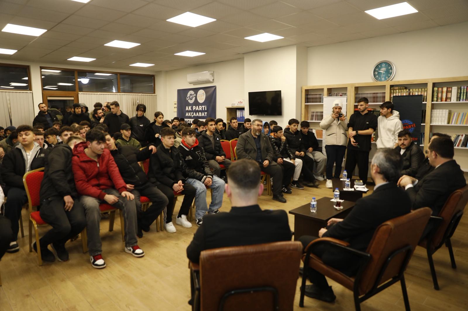 AK Parti Akçaabat İlçe Başkanı Muhammet Ali Yılmaz ise gençlerle bir araya gelmenin önemine dikkat çekerek, gençlerin sosyal, kültürel ve siyasal alanlarda aktif rol üstlenmesinin şehirlerin gelişimine katkı sağladığını ifade etti.