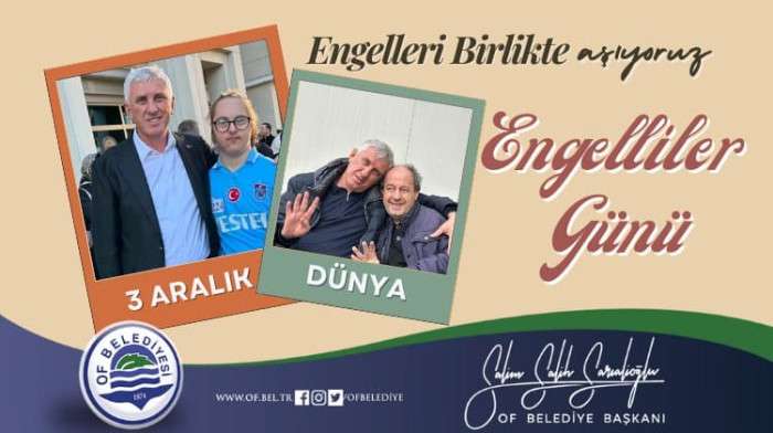 Bu duygu ve düşüncelerle öncelikle Of'umuzda yaşayan engelli kardeşlerim olmak üzere ülkemizdeki tüm engelli bireylerin 3 Aralık Dünya Engelliler Gününü en içten dileklerimle kutluyor, engellilerimizin hayatın içinde yer alması için herkesin gayret göstermesini temenni ediyor, aileleriyle birlikte mutlu ve huzurlu bir yaşam diliyorum."