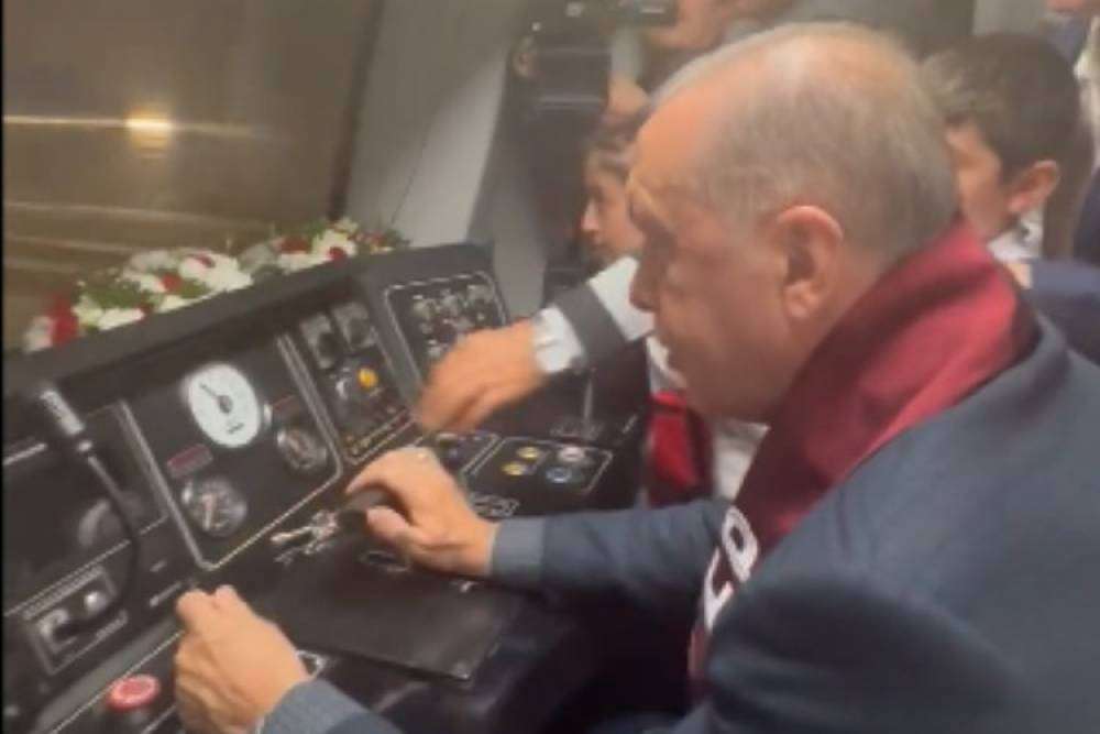 Cumhurbaşkanı Erdoğan, banliyö trenini kullanırken, "Beraber yürüdük biz bu yollarda" şarkısını seslendirdi.
