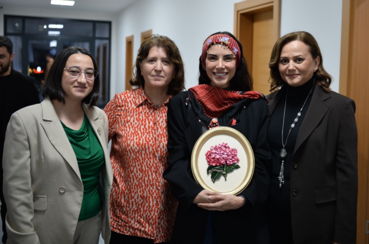 Merkezde eğitim alan ve çeşitli alanlarda üretim yapan kadınlarla sohbet eden Baysal, kadınların emeğini ve ortaya koydukları çalışmaları yakından inceledi. El sanatlarından geleneksel üretimlere kadar birçok faaliyetin yürütüldüğü merkez, ünlü oyuncunun dikkatini çekti.