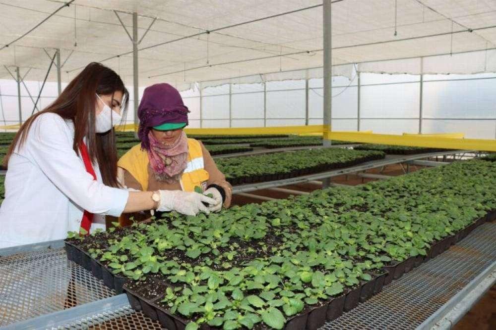 Tagetes, Petunya, Vinca, hercai menekşe gibi farklı türlerde yetiştirilen çiçek ve güller çeşitli aşamalardan geçirilerek kurulan seralarda modern sulama teknikleriyle sulanarak dikime hazır hale getiriliyor.