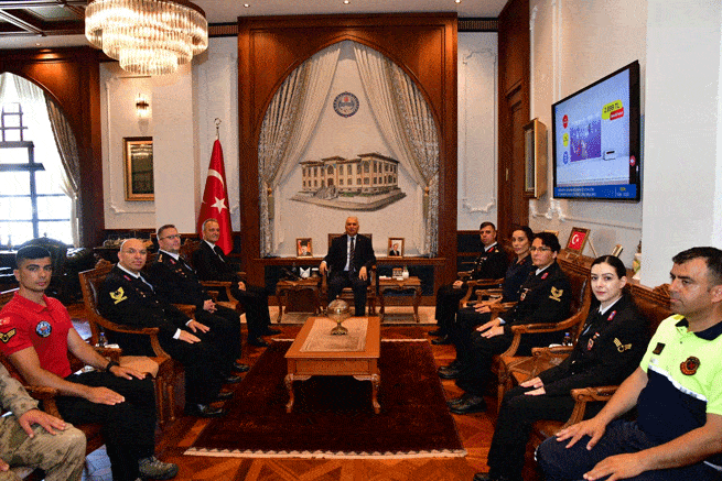 Jandarma Teşkilatımızın 185. Kuruluş Yıl Dönümü Dolayısıyla Vali Aziz Yıldırım'a Jandarma Teşkilatından Ziyaret