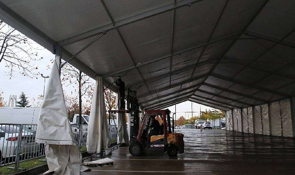 arkasında yer alan otoparkta karşılama çadırıyla etkinlik alanı ve ziyaretçi girişi