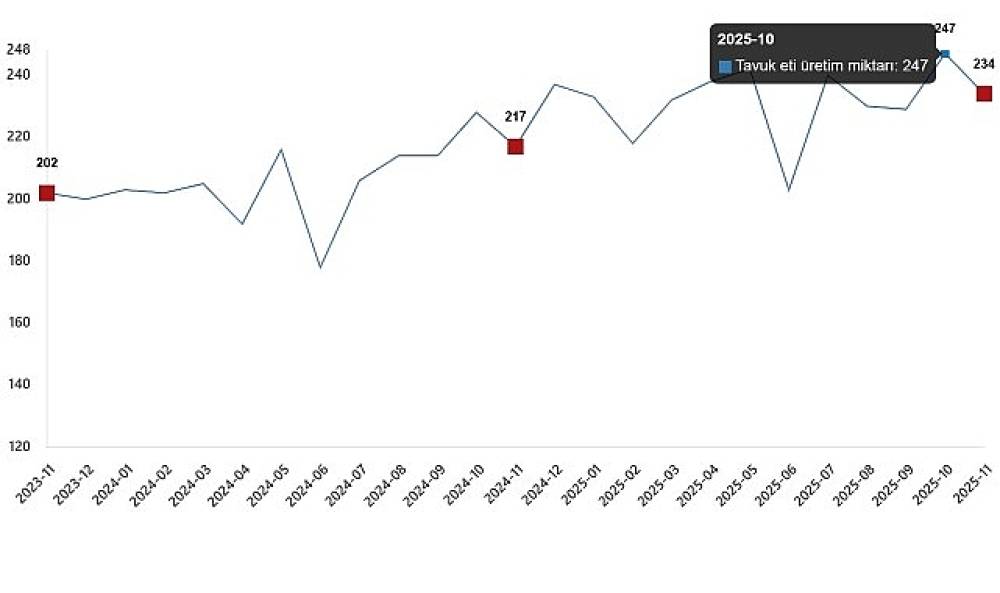 Tavuk eti üretim miktarı, Kasım 2025