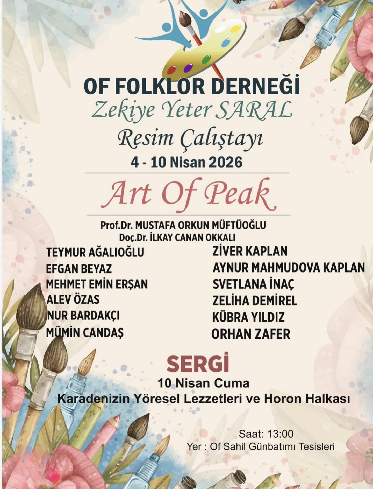 Trabzon’un Of ilçesi, Nisan ayında önemli bir kültür ve sanat etkinliğine ev sahipliği yapmaya hazırlanıyor. Of Folklor Derneği tarafından organize edilen ve Zekiye Yeter Saral’ın anısına düzenlenen resim çalıştayı, 4-10 Nisan 2026 tarihleri arasında sanatseverlerle buluşacak.