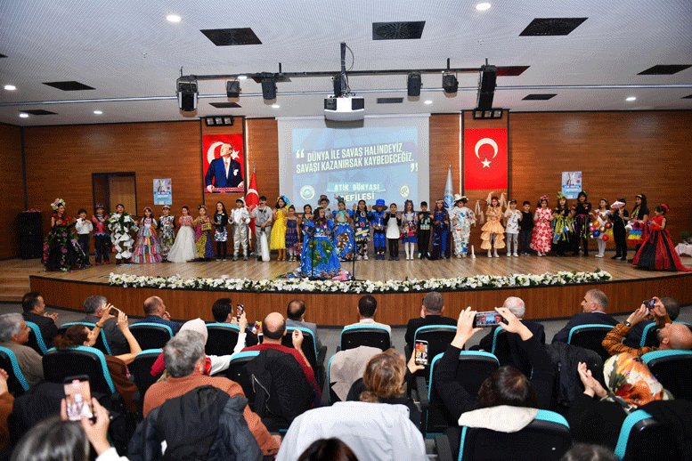 Trabzon Haber Merkezi | Kirlilik ve iklim krizine dikkat çekmek amacıyla Ortahisar Belediyesi İklim Değişikliği ve Sıfır Atık Müdürlüğü tarafından hazırlanan ve Bedri Rahmi Eyüboğlu İlkokulu öğrencilerinin yer aldığı Atık Dünyası Çocuk Defilesi, Ortahisar Belediyesi Çok Amaçlı Salonunda yapıldı. Defilede atıklardan ve geri dönüştürülebilen malzemelerden hazırlanmış 34 kıyafet sergilendi.