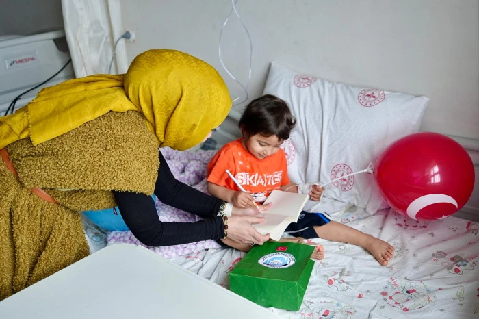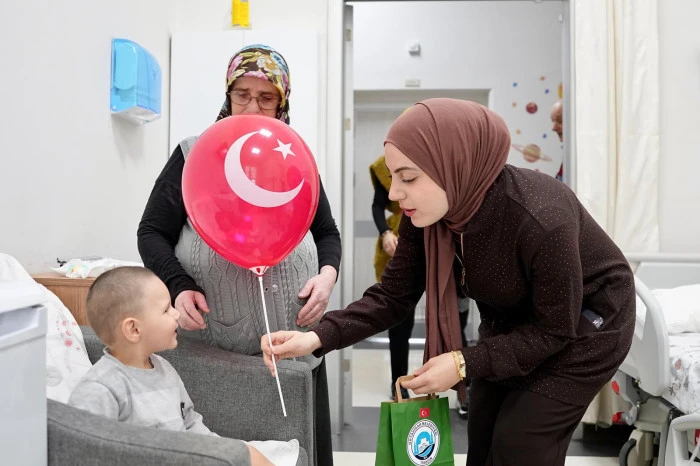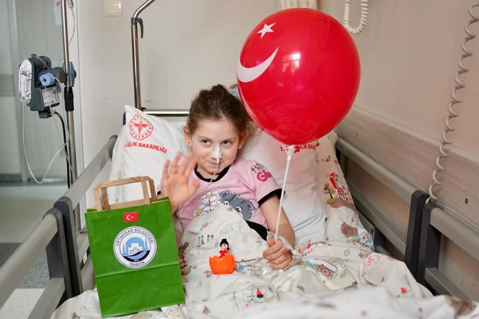 Ortahisar Belediyesi, 23 Nisan coşkusunu sadece etkinlik alanlarıyla sınırlı bırakmadı. Sosyal Hizmetler Müdürlüğü ekipleri, hastanelerde tedavi gören çocukları ziyaret ederek çeşitli hediyelerle moral verdi. Ay yıldızlı balonlar, kırtasiye ürünleri ve hediyelerle sevindirilen çocuklar, bayramı hastanede geçirmelerine rağmen mutluluk yaşadı.