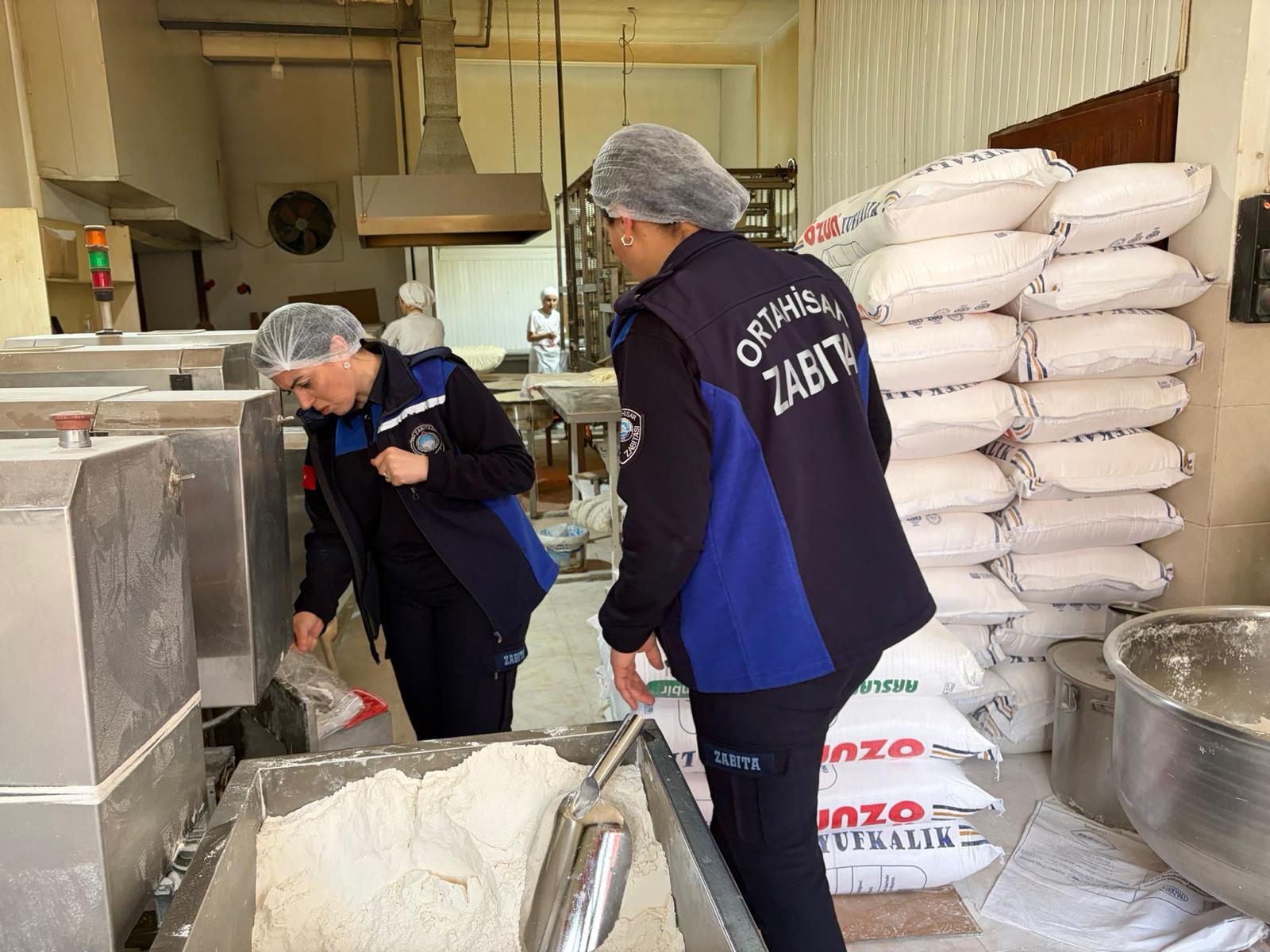 Ramazan ayında artan tüketim nedeniyle denetim kapsamı genişletilirken, unlu mamuller ve tatlı üretimi yapılan imalathanelerde detaylı incelemeler yapıldı. Ekipler, iş yerlerinin ruhsat durumlarını, fiyat tarifelerini ve hijyen koşullarını kontrol etti.