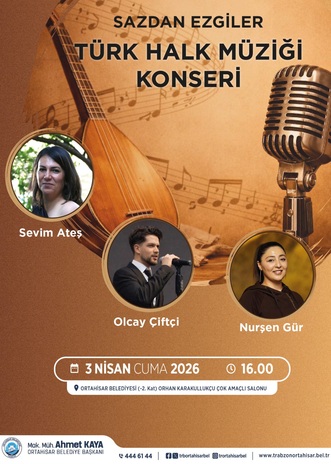 Trabzon haberleri | Ortahisar Belediyesi, kültür ve sanat etkinlikleri kapsamında Türk Halk Müziği tutkunlarını özel bir konserle buluşturmaya hazırlanıyor. “Sazdan Ezgiler” temasıyla gerçekleştirilecek etkinlikte, Anadolu’nun farklı yörelerinden derlenen eserler müzikseverlerle buluşacak.