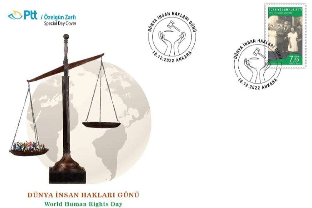 PTT AŞ tarafından “Dünya İnsan Hakları Günü” konulu özelgün zarfı 10 Aralık 2022 tarihinde tedavüle sunuldu.