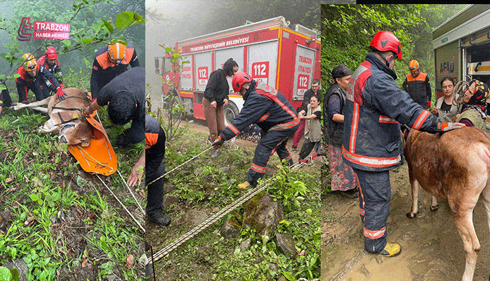 Trabzon haberleri | Trabzon Büyükşehir Belediyesi İtfaiye Dairesi Başkanlığı ekipleri, uçuruma yuvarlanan inek için harekete geçerek ineği düştüğü yerden kurtardı. Ekiplerin çalışması vatandaşlar tarafından takdir topladı.