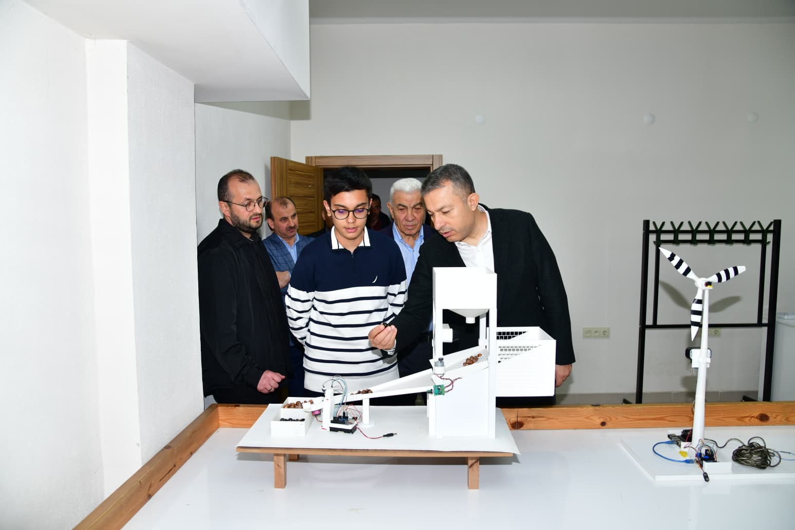 Merkezde eğitim gören öğrencilerin geliştirdiği projeleri tek tek inceleyen Vali Şahin, gençlerin yenilikçi bakış açıları ve teknik becerilerinin geleceğe dair umut verdiğini ifade etti. Öğrencilerin azimle çalışarak kendilerini geliştirmelerinin, ülkenin bilimsel ilerlemesine önemli katkılar sağlayacağını vurguladı.
