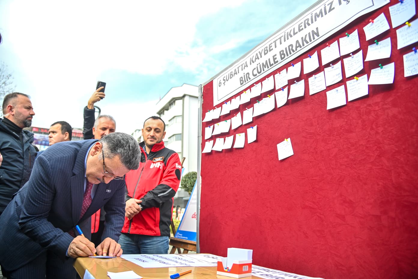 Programın sonunda katılımcılar, alanda kurulan “6 Şubat’ta kaybettiklerimiz için bir cümle bırakın” başlıklı panoya notlar yapıştırarak duygu ve düşüncelerini paylaştı.