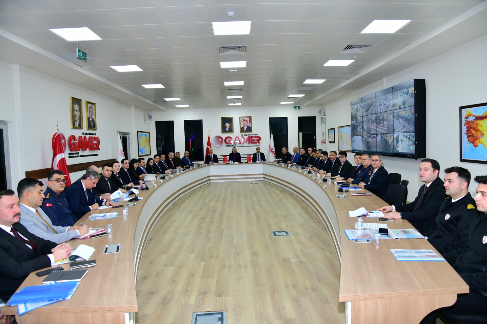 GAMER Toplantı Salonu’nda düzenlenen toplantıya; mülki idare amirleri, emniyet ve jandarma başta olmak üzere güvenlik birimlerinin yetkilileri ile ilgili kamu kurum ve kuruluşlarının temsilcileri katılım sağladı.