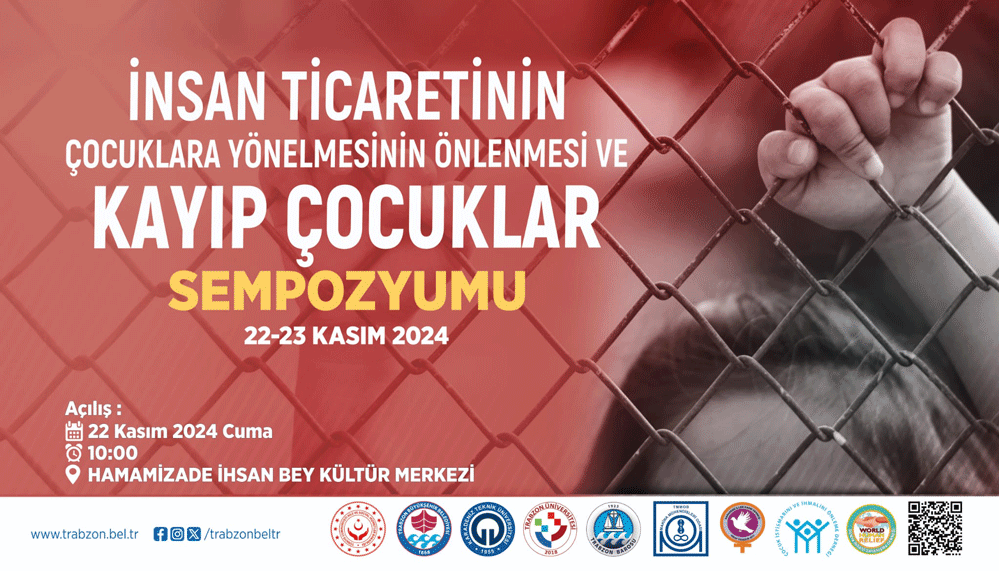 Trabzon Haber Merkezi | Trabzon'da, 19 Kasım Çocuk İhmal ve İstismarını Önleme Günü ve 20 Kasım Dünya Çocuk Hakları Günü nedeniyle Aile ve Sosyal Hizmetler Bakanlığı, Trabzon Büyükşehir Belediyesi, Karadeniz İlleri Kadın Platformu (KİKAP), Trabzon Barosu, Karadeniz Teknik Üniversitesi, Trabzon Üniversitesi, Çocuk İstismarını ve İhmalini Önleme Derneği, TMMOB Makina Mühendisleri Odası ve Dünya İnsani Dayanışma Derneği iş birliğinde, “İnsan Ticaretinin Çocuklara Yönelmesinin Önlenmesi ve Kayıp Çocuklar” konulu sempozyum düzenlenecek. 22-23 Kasım 2024 tarihlerinde 10.00-17.00 saatleri arasında Hamamizade İhsan Bey Kültür Merkezi'nde gerçekleştirilecek sempozyumda, uzmanlar katılımcıları bilgilendirecek. Birleşmiş Milletler Mülteciler Yüksek Komiserliği’nden bir göç uzmanı ile bir çocuk psikiyatristi, savaş ve göçün çocuklar üzerindeki etkisini anlatacak. Sempozyuma ayrıca; Aile ve Sosyal Hizmetler Bakanlığı’ndan Danışman Esma Atalay, Yargıtay Cumhuriyet Başsavcısı Rıfat Sagut, 7 üniversiteden adli tıp uzmanları, doktorlar, hukukçular ve sosyal hizmetler uzmanları katılacak.