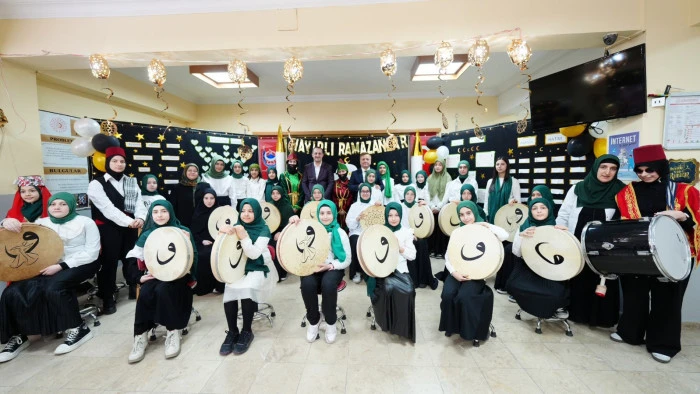 Yaklaşık 40 öğrencinin aktif görev aldığı etkinlikte, Ramazan ayının manevi atmosferi geleneksel gösterilerle canlandırıldı. Bendir eşliğinde ilahiler seslendirilirken, Karagöz ve Hacivat oyunu sahnelendi. Meddah gösterisi ve Ramazan davulcusunun manileri ise programa renk kattı.