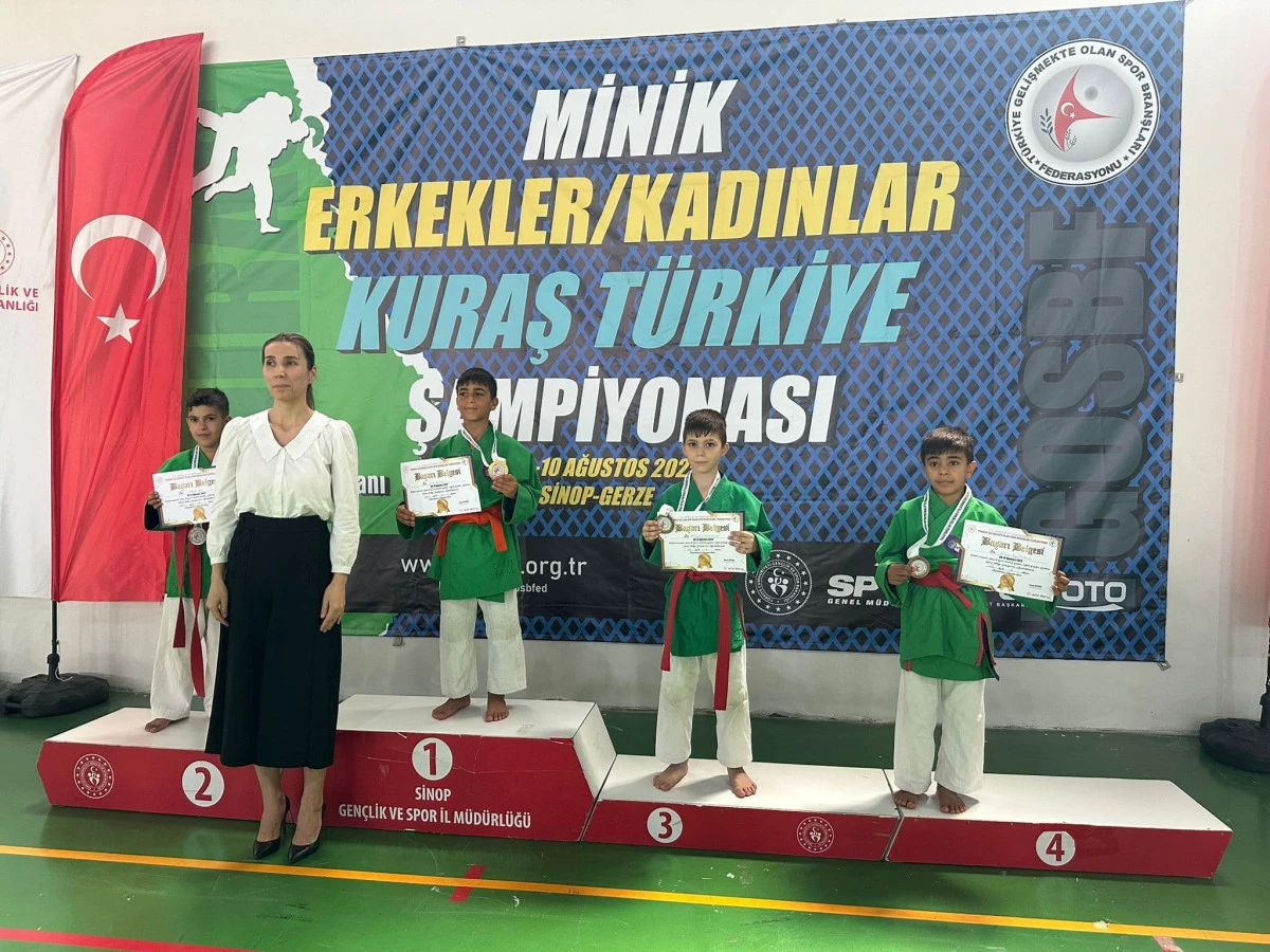 Trabzon Haber Merkezi | Sinop’ta düzenlenen Minikler Türkiye Kuraş Şampiyonası’nda Trabzon Büyükşehir Belediyespor’un minik sporcuları, 2 altın, 2 gümüş ve 1 bronz madalya kazanarak şehre gurur yaşattı.