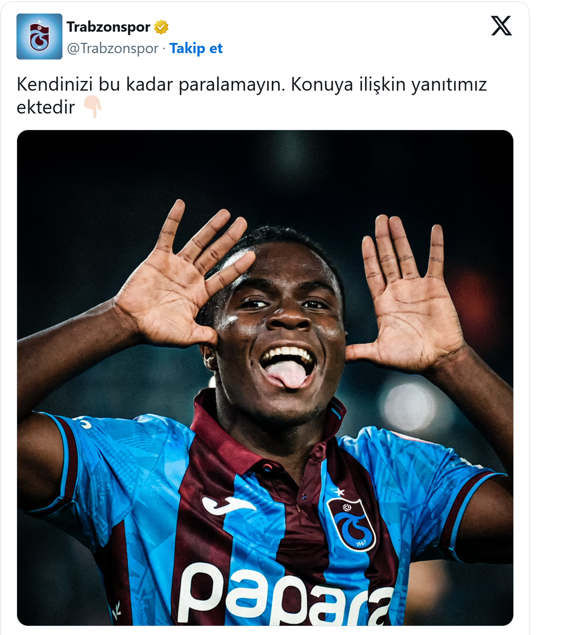 Yaşanan tartışmaya Trabzonspor cephesi sessiz kalmadı. Bordo-mavili kulübün resmi sosyal medya hesabından paylaşılan, Oulai’nin “nanik” yaptığı görsel tartışmanın dozunu artırdı.