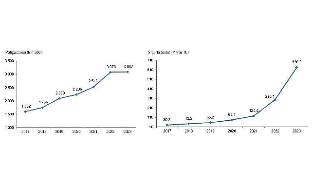 Toplam devlet destek prim tutarı %91,7 artışla 9 244 510 895 TL olurken, toplam prim tutarı %92,6 artışla 17 349 600 284 TL olarak gerçekleşmiştir. Sigorta ettirilen alan (sera dahil) 2023 yılında %4,4 azalma göstererek 33 372 370 dekar olmuştur. sigorta ettirilen büyükbaş hayvan sayısı ve küçükbaş hayvan sayısı ise sırasıyla %42,9 ve %0,2 artmıştır.