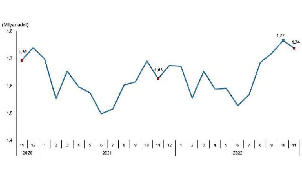 Bir önceki ay 1 milyar 766 milyon 165 bin adet olan tavuk yumurtası üretimi Kasım ayında %1,7 azalarak 1 milyar 736 milyon 724 bin adet oldu.
