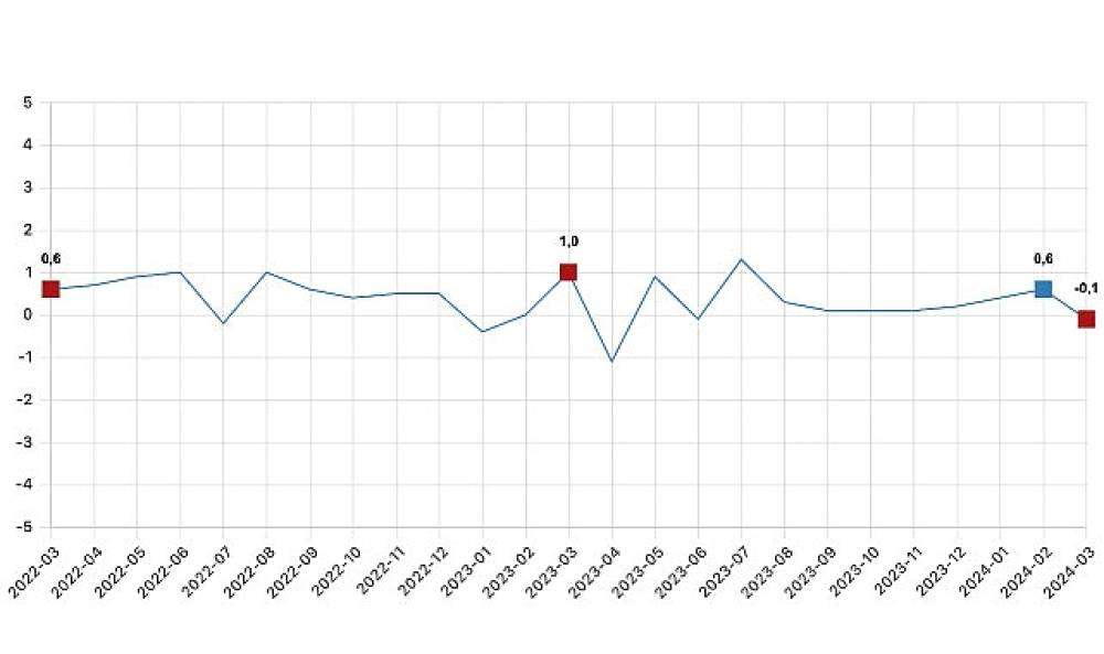 Sanayi, inşaat ve ticaret-hizmet sektörleri toplamında ücretli çalışan sayısı 2024 Mart ayında bir önceki aya göre %0,1 azaldı.
