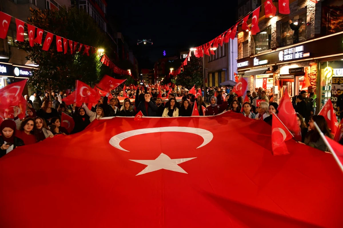 Trabzon haberleri | Trabzon’da 29 Ekim Cumhuriyet Bayramı’nın 102. yılı, düzenlenen görkemli fener alayıyla kutlandı. Kahramanmaraş Caddesi’nden başlayarak 15 Temmuz Şehitler ve Hürriyet Parkı’nda (Meydan) son bulan yürüyüşe Trabzon Valisi Aziz Yıldırım, Büyükşehir Belediye Başkanı Ahmet Metin Genç, il protokolü, öğrenciler ve çok sayıda vatandaş katıldı.