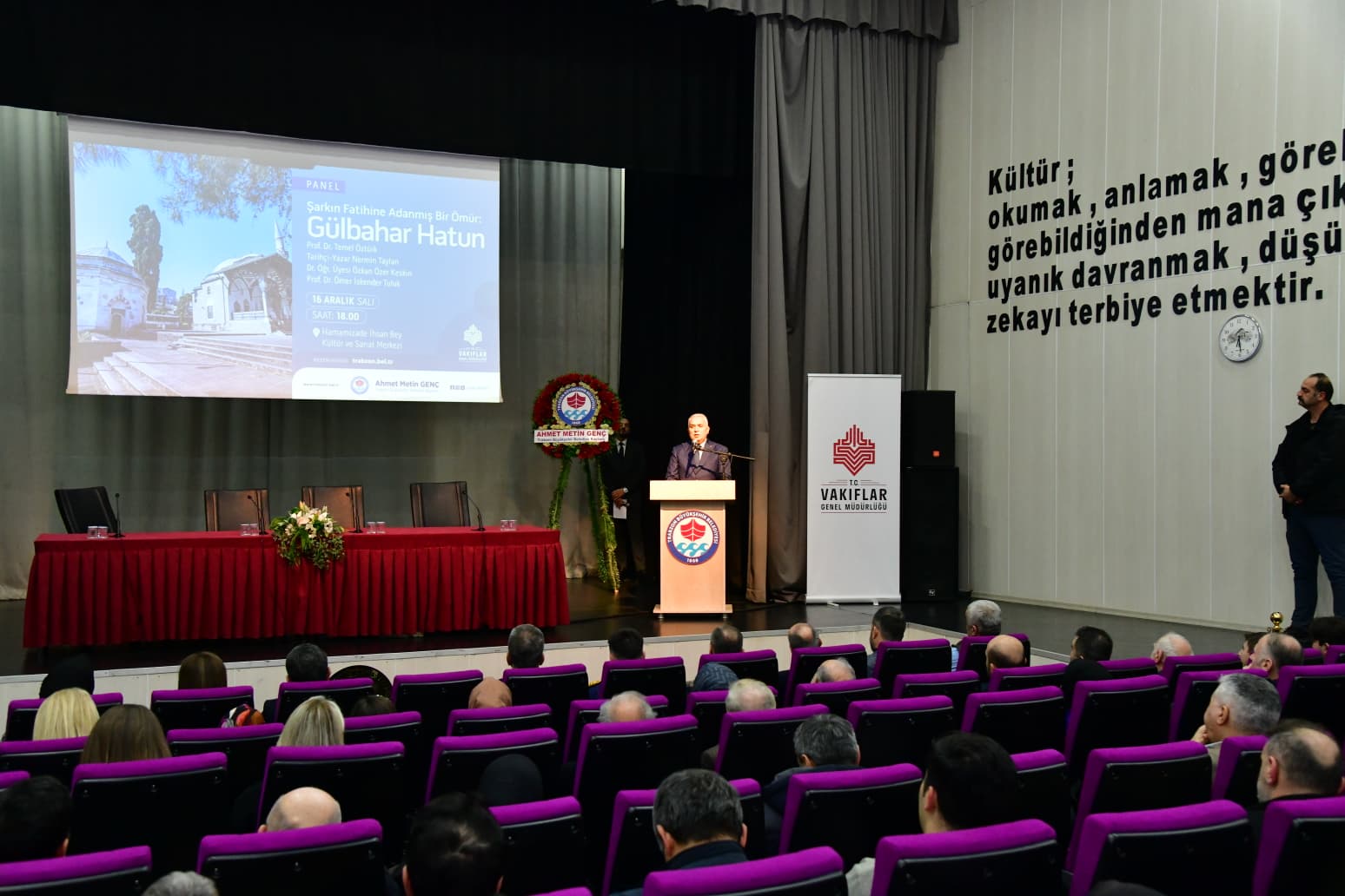 Trabzon haberleri | Trabzon Valisi Aziz Yıldırım, Vakıflar Bölge Müdürlüğü organizasyonuyla Hamamizade İhsan Bey Kültür Merkezi’nde düzenlenen “Şarkın Fatihine Adanmış Bir Ömür: Gülbahar Hatun” başlıklı panele katıldı. Osmanlı tarihinin önemli kadın şahsiyetlerinden biri olan Gülbahar Hatun’un hayatı, hayır eserleri ve vakıf anlayışı panelde çok yönlü olarak ele alındı.