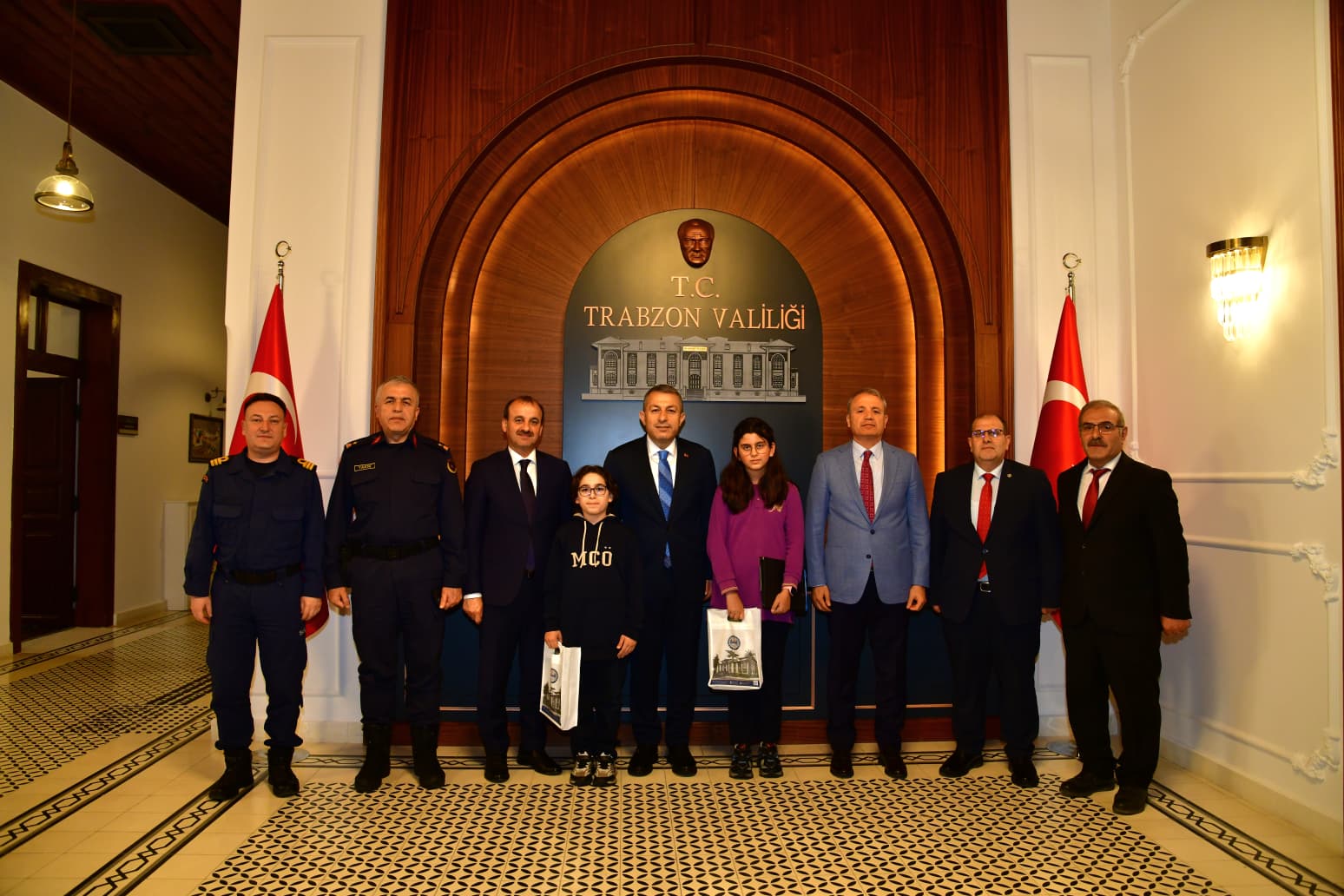 Trabzon haberleri | 23 Nisan Ulusal Egemenlik ve Çocuk Bayramı etkinlikleri kapsamında Mahmut Celaleddin Ökten İmam Hatip Ortaokulu 5. sınıf öğrencileri Talha Alemdar ve Nehir Göksal, İl Millî Eğitim Müdürü Hasan Uygun ile birlikte Vali Tahir Şahin’i makamında ziyaret etti.