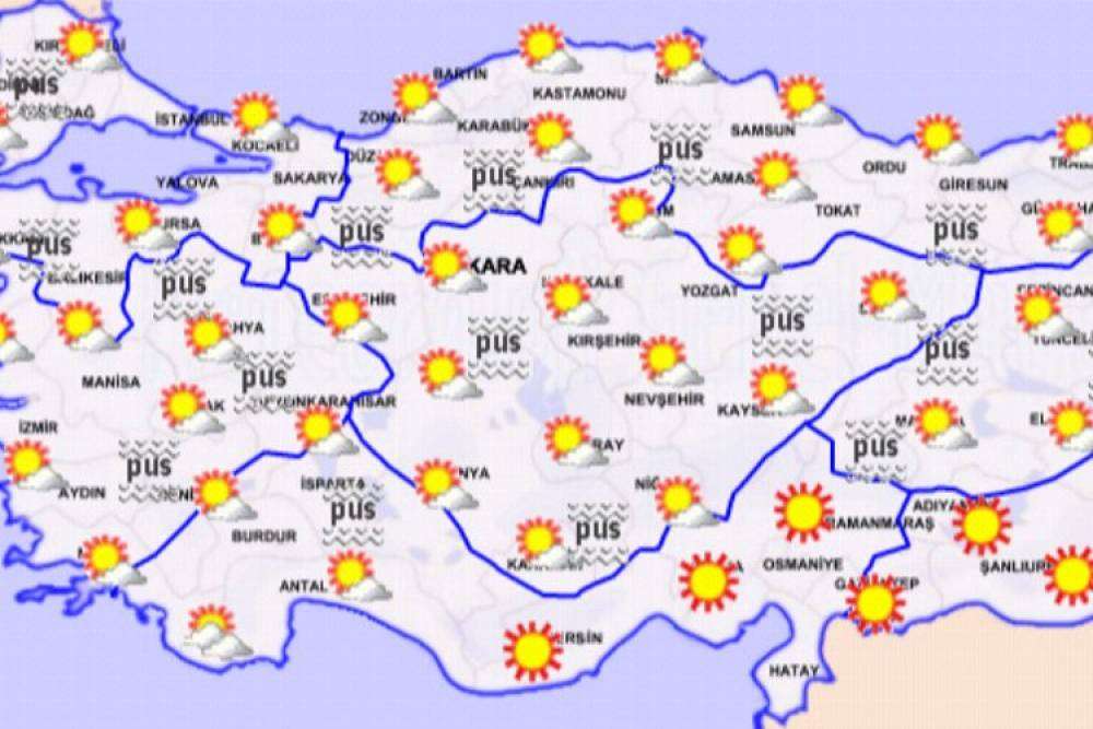 Yeni yılın ilk gününde ülke genelinde yağış beklenmiyor. Güneybatı kesimlerin parçalı bulutlu, diğer yerlerin az bulutlu ve açık geçeceği tahmin ediliyor. Marmara Bölgesi ile iç ve doğu kesimlerde yer yer pus ve sis hadisesi bekleniyor.